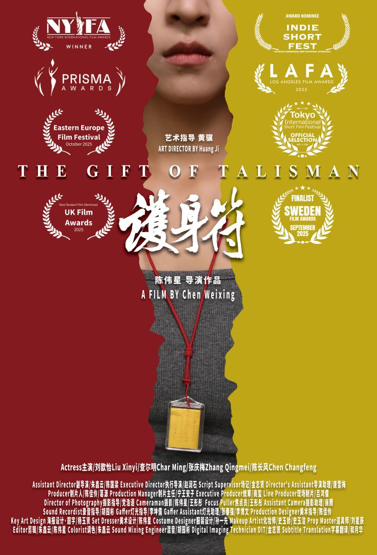 人民网首尔12月25日电(张锴)近日,英国电影奖(UK Film Awards)公布年度评选结果,由在韩中国留学生陈伟星同学创作的短片《护身符》获得“最佳学生影片”提名,这是本届评选中少数入围的中国本土创作作品。 电影《护身符》宣传海报 短片《护身符》以中国小城为背景,讲述少女在家庭期望与个人选择之间的徘徊与成长故事。…