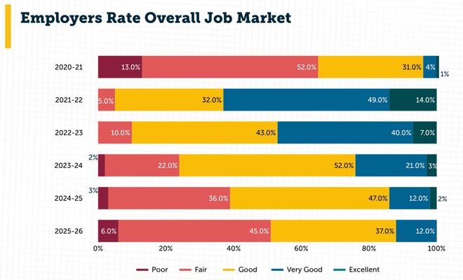 根据美国大学与雇主协会(NACE)发布的《2026就业展望》,雇主们的悲观情绪已达到2020年以来的最高点。